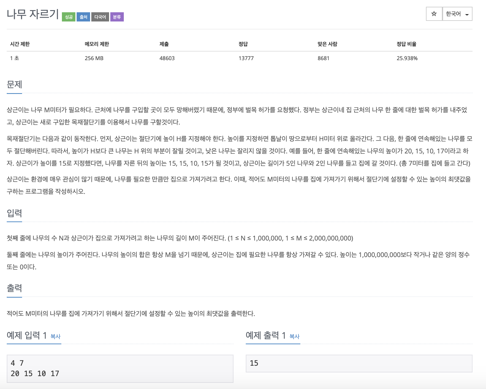 | [백준][binary search] 랜선 자르기 python (200928) (0) | 2020.09.28 |