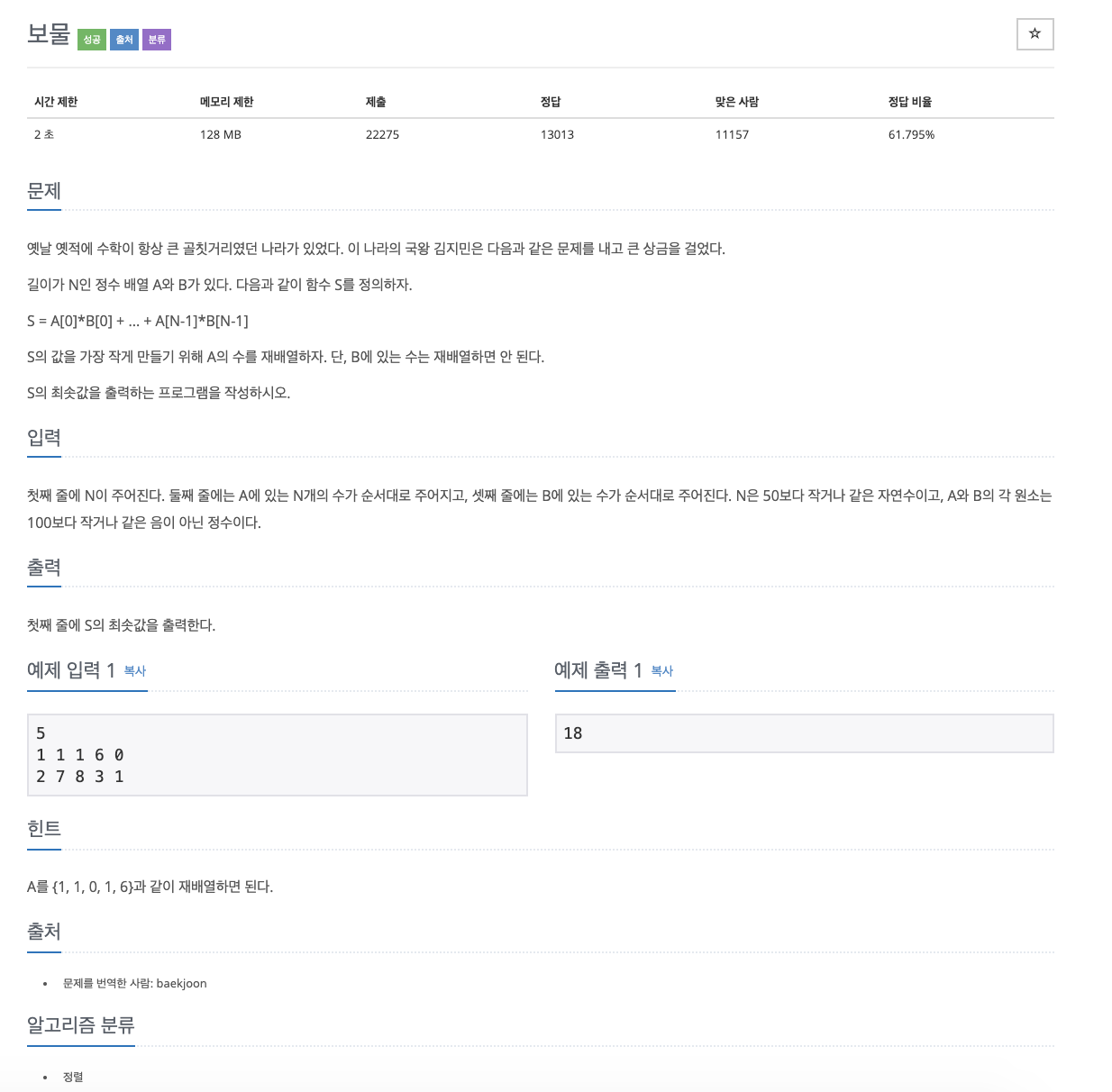 1026번: 보물