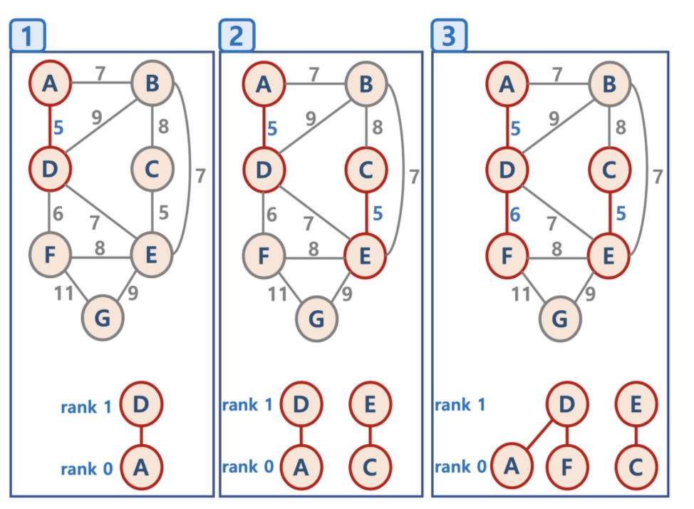 e. 이 때 연결을 시켜줄 때 누가 부모로 될지 정해야하는데, 그것은 rank 기준으로 한다.