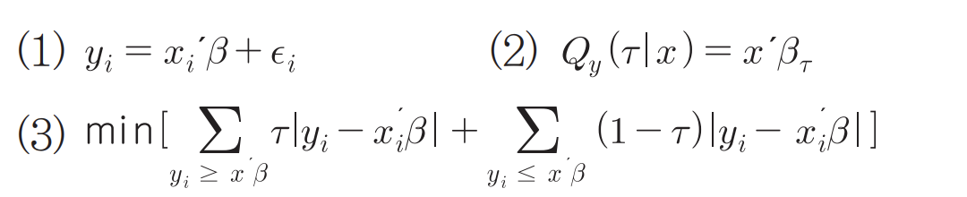 (3) 2번의 분위회귀추정치 β⌒τ는 (3)번의 최소화 문제를 만족하는 해로부터 구할 수 있음