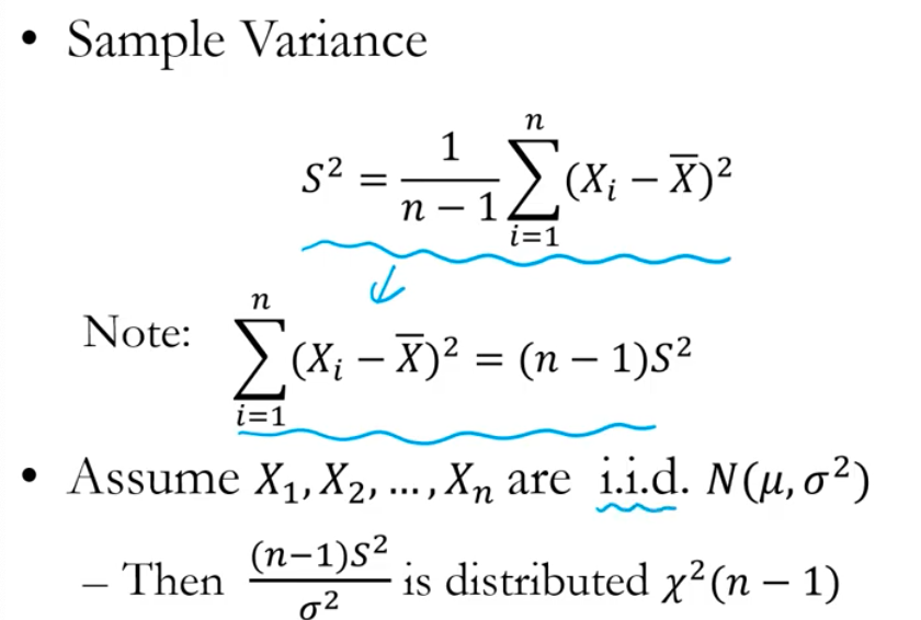 2. 표본 분산 ( 그중에서도 표본의 분산의 분산) 이 카이제곱 분포를 따른다 !! **
