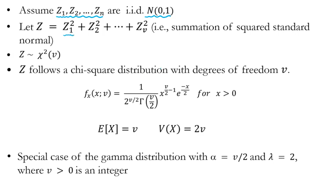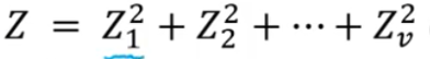 ** 여기서 v 는 자유도 (파라미터) 인데, 표준 정규 분포를 각각 몇 개 더해줬는지를 뜻함