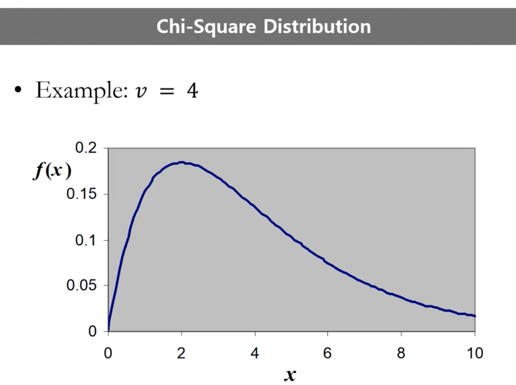 2) 카이 제곱 그래프 - skew to the right (자유도 4)