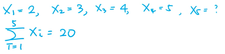 --> sum이 주어지기때문에 나머지 하나는 고정값, 4개는 자유롭게 정할 수 있음 ~!