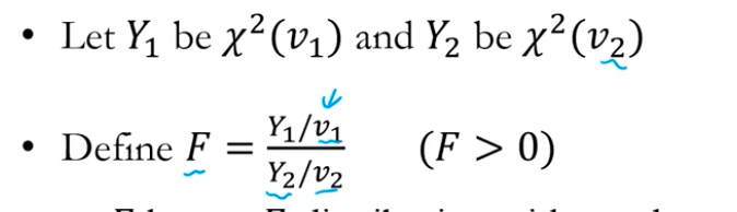 * F 분포의 파라미터는 자유도1,2 ==> F(n1-1, n2-1)