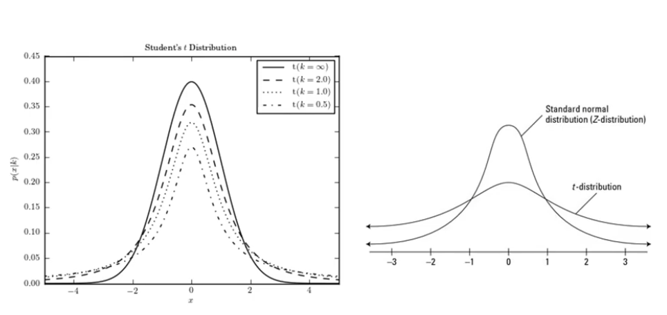 * T도 정규분포 형태랑 비슷하게 나옴 대신 시그마(모집단 표준편차) 대신 S(표본의 표준편차)