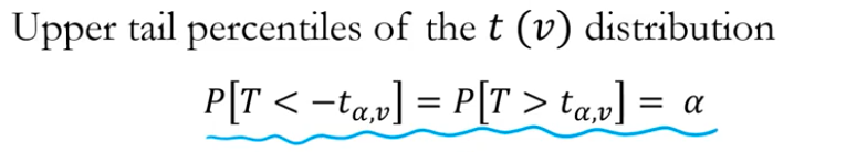 - 마찬가지로 T분포에서 특정 알파값이 어디에 속할지 확률을 계산할 때 테이블로 해석을 함