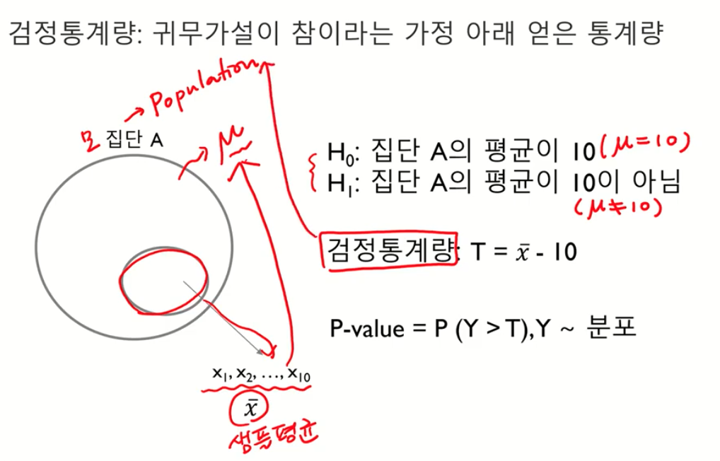 : 귀무가설이 참이라는 가정 아래 얻은 통계량