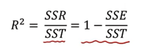 1) R2 score (SSR / SST) = 1 은