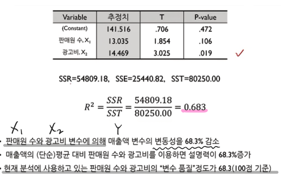 → (통계적으로 표현) 독립변수로 종속변수를 추정했는데 실제값과 같음, 독립변수 효과 있음