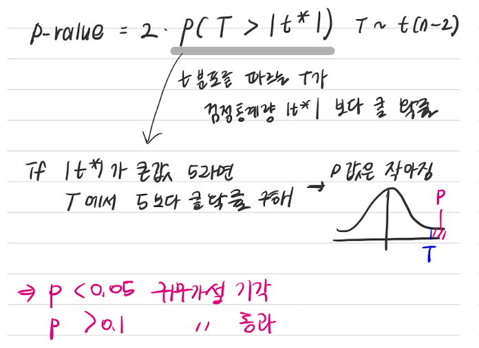 → 즉, t값이 크면 추정된 계수가 0이 아니라는 것