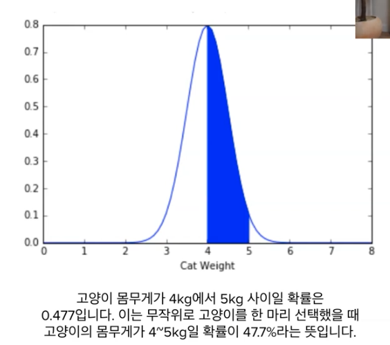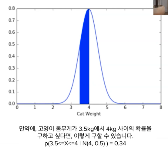오늘의 낮 최고기온이 20이상 25 이하일 확률은? 고양이의 무게가 4kg 이상 5kg 이하일 확률은?