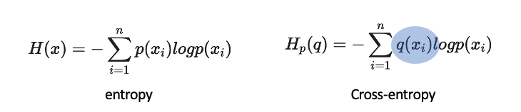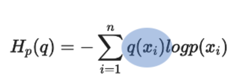크로스 엔트로피는 기존의 entropy에서 p(x)값이 q(x)값으로 바뀐거다.