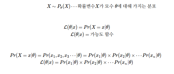 가능도 함수는 모든 입력 데이터를 통해 산출된 가능도 값을 곱한 것
