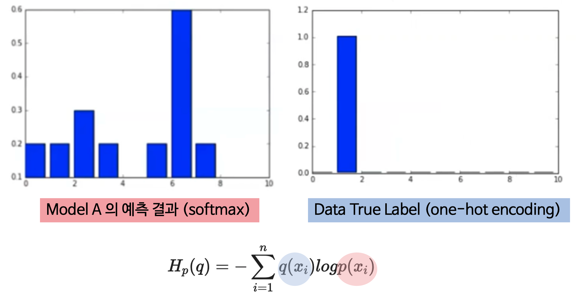 좌측의 softmax를 통해 나온 확률 값이 p(x), 우측의 정답 label 값이 q(x)다.