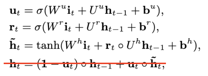 * ut : update gate (이번 정보를 얼마나 반영할지)