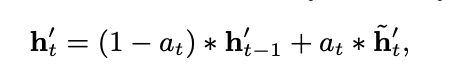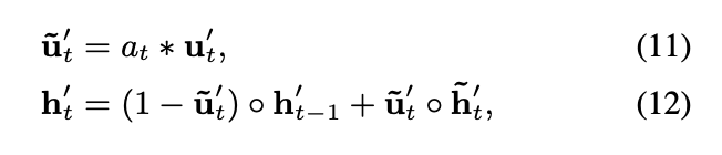 → 이전 update 게이트 값 Ut가 들어가는 자리에 attention score at 활용