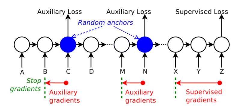 따라서 최종 hidden state가 아니라 중간의 hidden state에 Auxiliary gradient 를 계산하고 loss를 적용하는 방법
