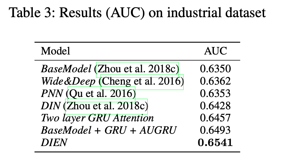 - dien 은 user의 sequential interest를 포착했을 뿐만 아니라 interest 발전 과정도 깨달았음