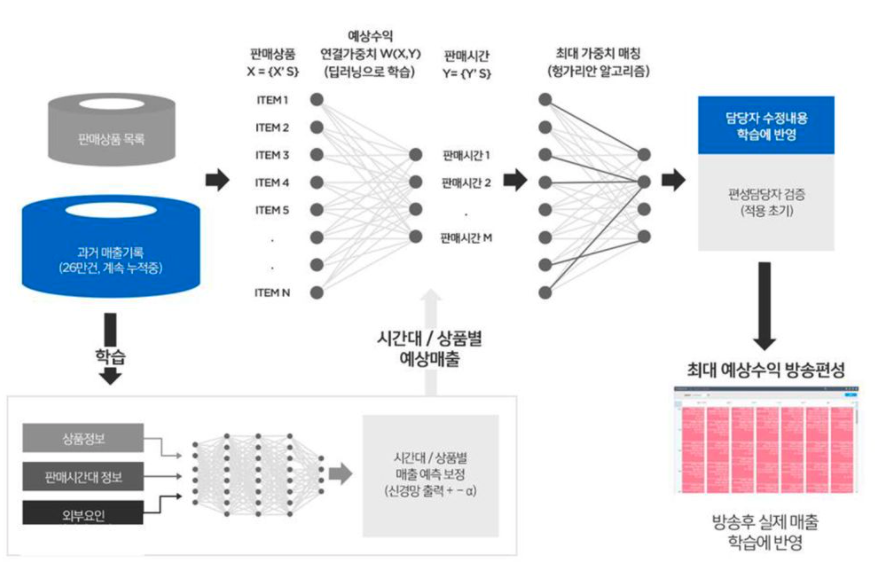 2) 헝가리안 알고리즘 - 판매시간 + 예상 수익 예측 (1번의 아웃풋으로) 최대 가중치 매칭 --> 최적의 편성 시간표 도출