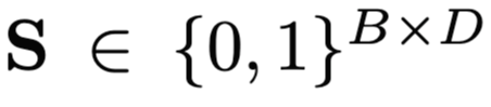 - output shape : batch * feature 개수 (일부 칼럼 0으로 masking) $M[1] = R^{B\times D}$