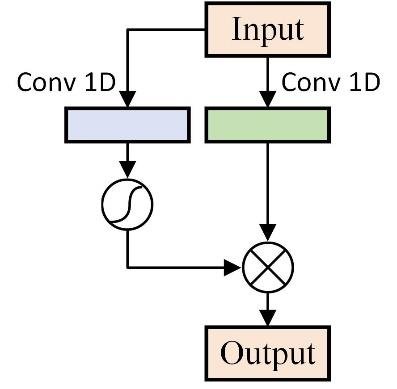 - GLU 추가 : 2가지 path를 활용 (초록block- 기존 signal이 전달 // 파랑block - sigmoid 변형된 값) → 이 둘을 element wise