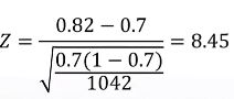차이 (Z값이) 큼 : 검정통계량 값 커짐 --> Pvalue 값 작아짐 --> 귀무가설 기각 "두 집단 비율이 같지않다"