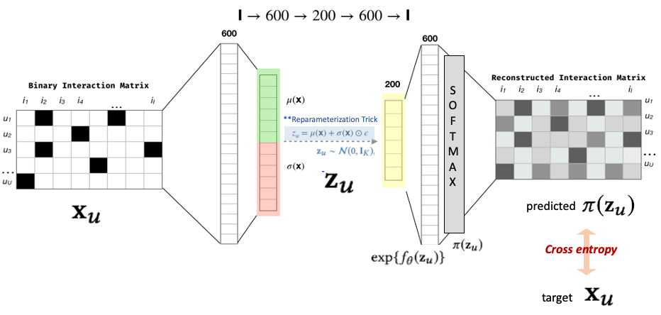 다시 말하면 VAE 모델은 유저의 click history를 기반으로 최대 엔트로피를 가지는 분포를 찾는 것이며,