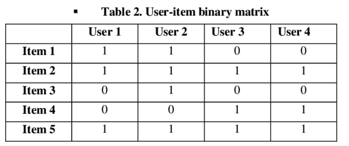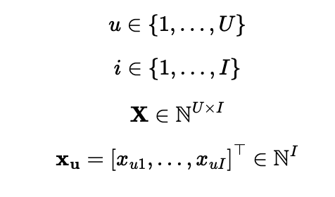 - X : user과 item의 interaction matrix (아래와 같은 bag-of-words 형태로 표현됨)