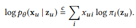 3. Zu (latent vector) 를 다시 decoder로 태울 때 Multinomial distribution (다항분포) 이라