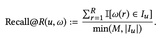 Recall@R, NDCG@R 두 개의 rank metric을 사용해 성능을 평가