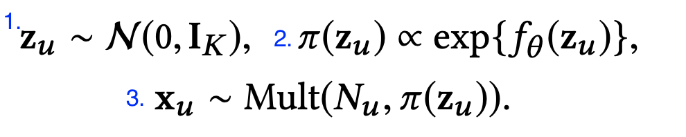 이 softmax output 값은 π(Zu) 과 비례하며 π(Zu)는 전체 아이템에 대한 해당 유저의 확률 벡터로 해석 할 수 있다.
