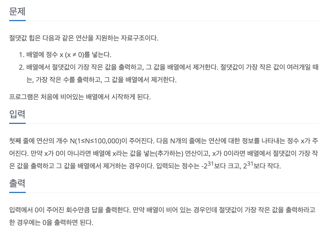 최대힙과 절대값 힙은 앞에 포스팅에서 풀이를 했던 최소 힙에서 약간만 응용하면 아주 쉽게 풀린다 !