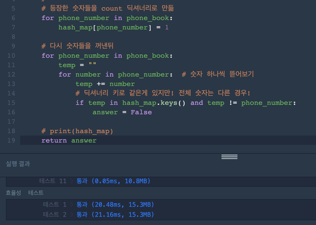 전화번호부에 적힌 전화번호를 담은 배열 phone_book 이 solution 함수의 매개변수로 주어질 때, 어떤 번호가 다른 번호의 접두어인 경우가 있으면 false를 그렇지 않으면 true를 return 하도록 solution 함수를 작성해주세요.